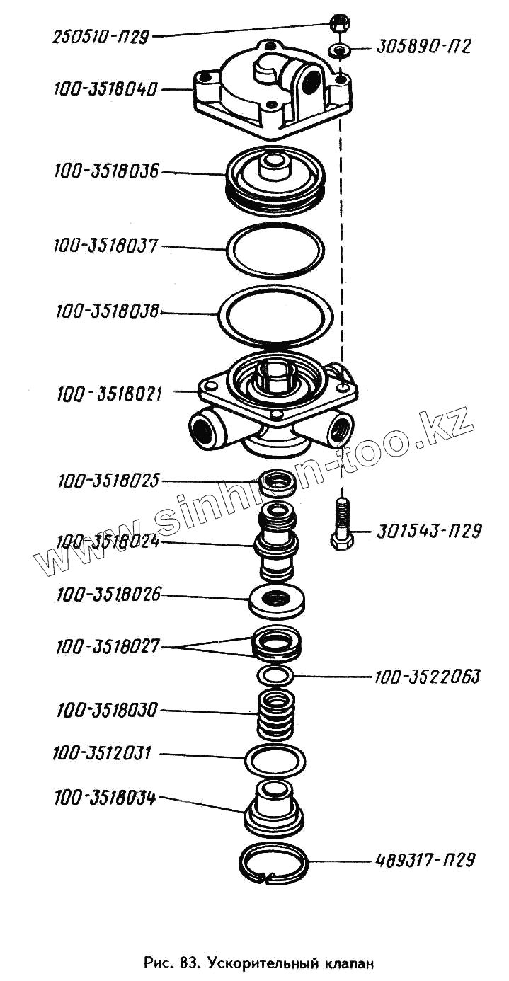 Каталог запасных частей к технике: ЗИЛ-433360. Ускорительный клапан