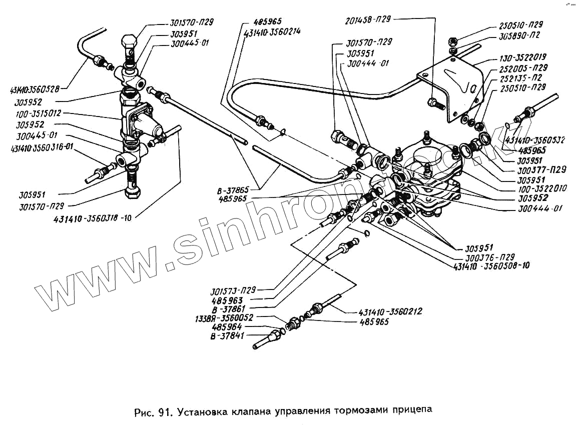 Каталог запасных частей к технике: ЗИЛ-433360. Установка клапана управления тормозами прицепа