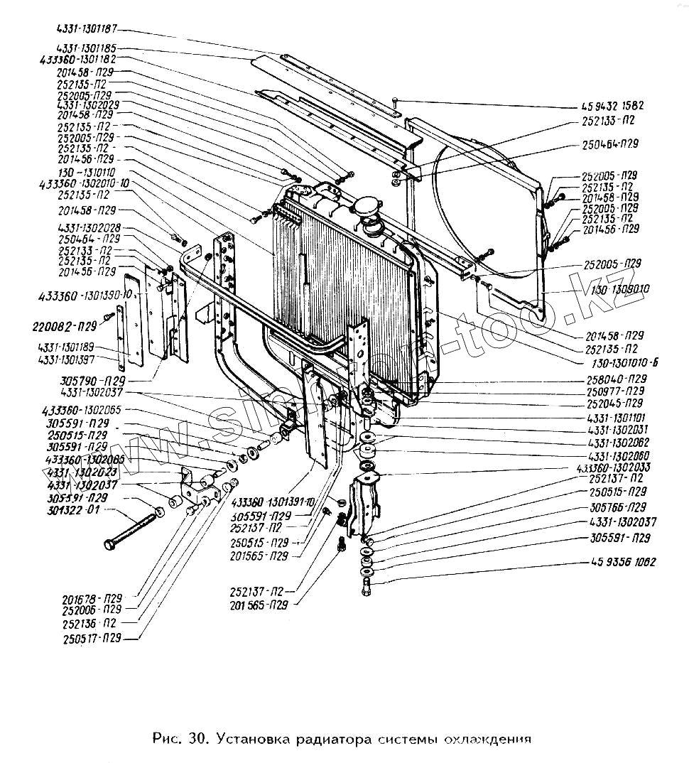 Каталог запасных частей к технике: ЗИЛ-433360. Установка радиатора системы охлаждения