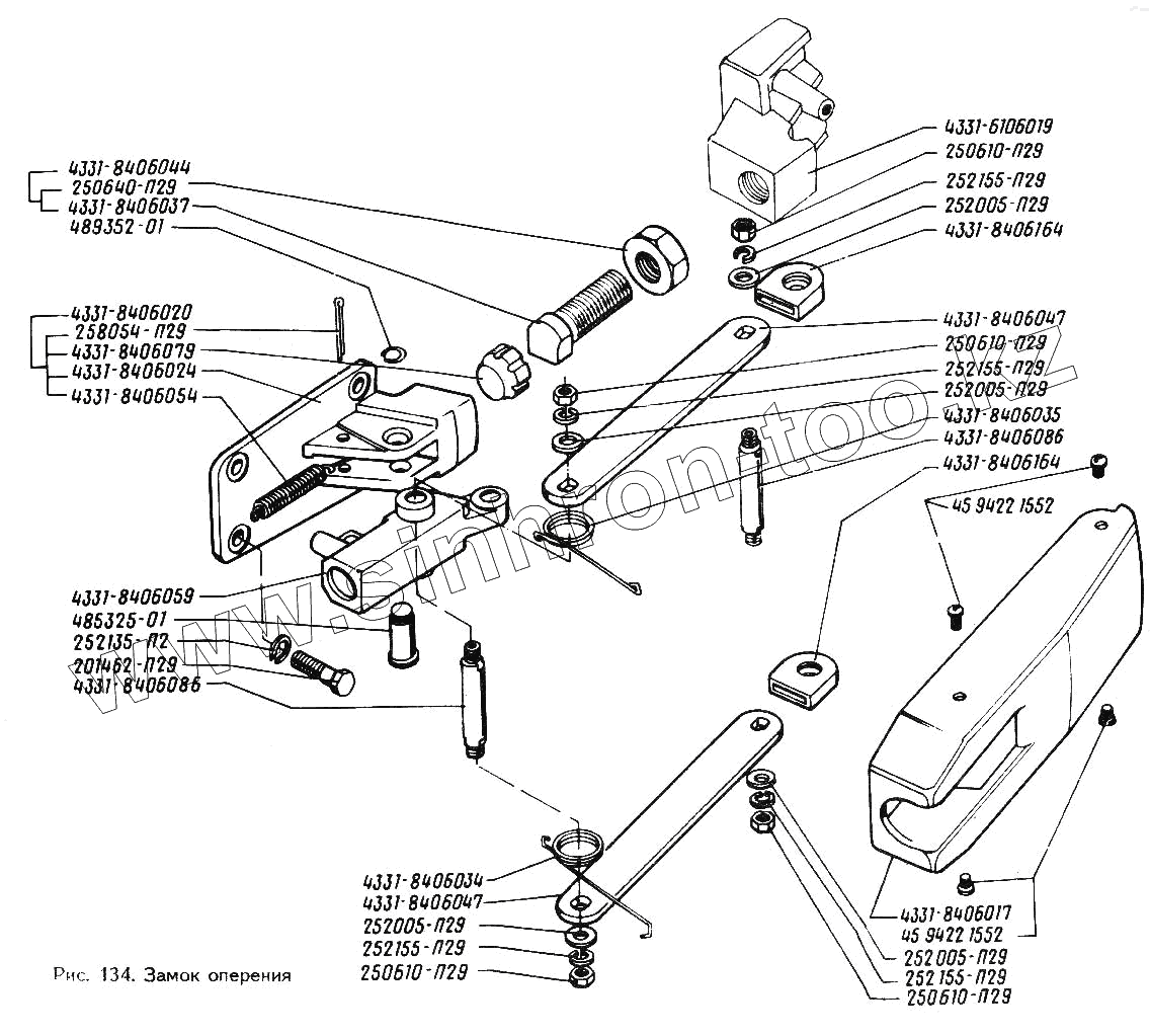 Каталог запасных частей к технике: ЗИЛ-433360. Замок оперения