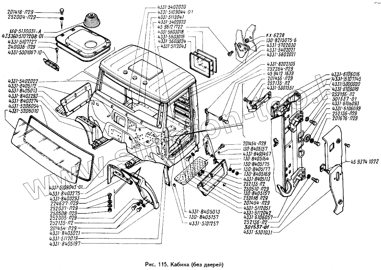Каталог запасных частей к технике: ЗИЛ-442160. Кабина (без дверей)