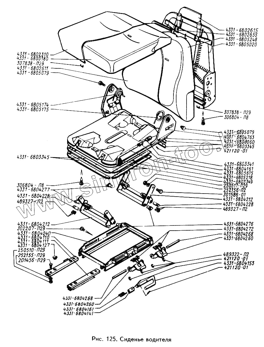 Каталог запасных частей к технике: ЗИЛ-442160. Сиденье водителя