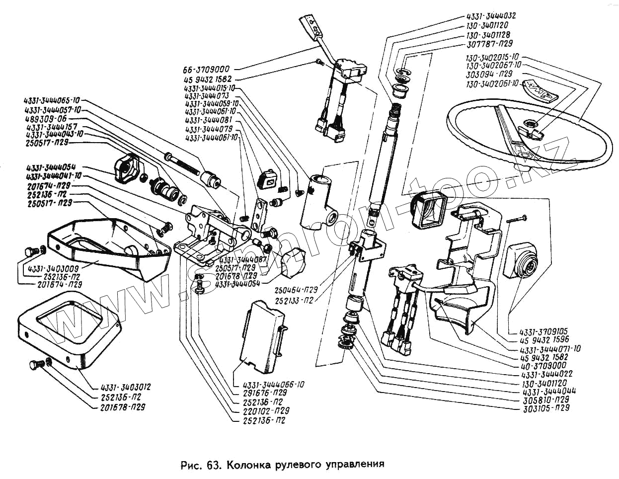 Каталог запасных частей к технике: ЗИЛ-494560. Колонка рулевого управления