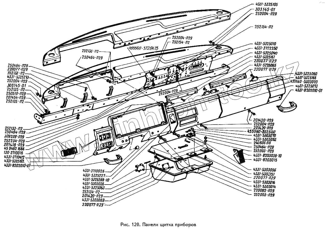 Каталог запасных частей к технике: ЗИЛ-494560. Панели щитка приборов