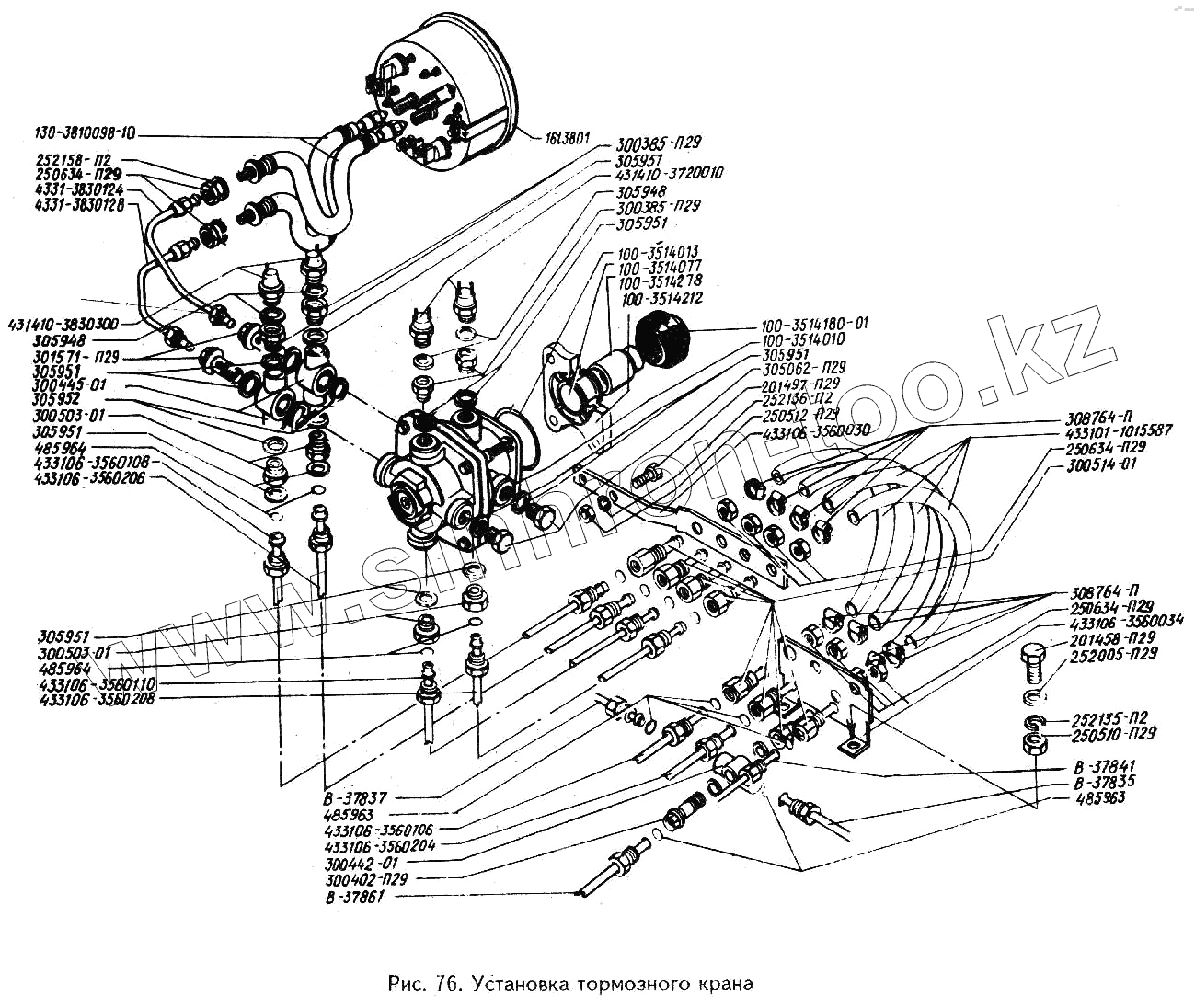 Каталог запасных частей к технике: ЗИЛ-494560. Установка тормозного крана