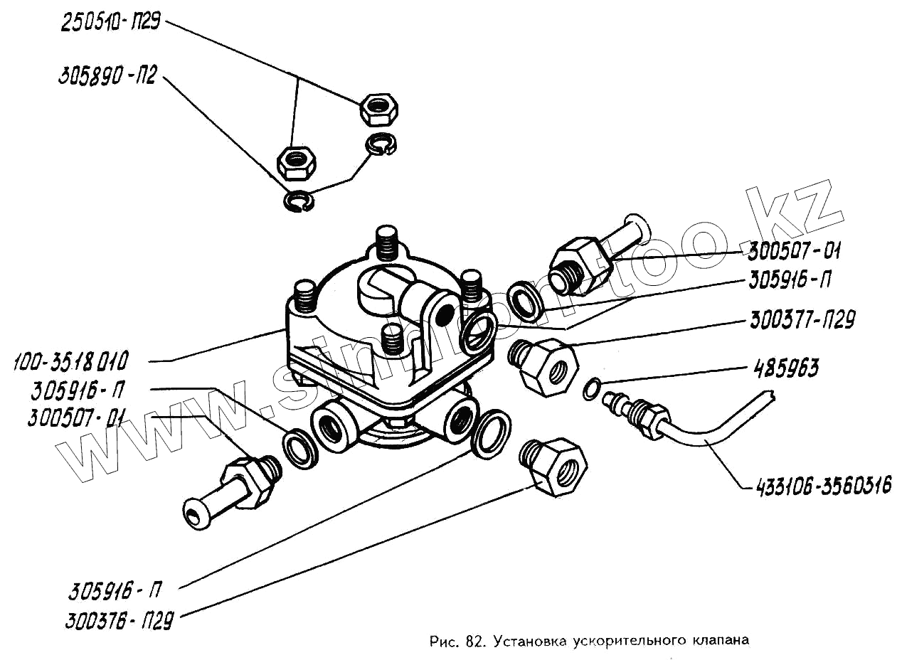 Каталог запасных частей к технике: ЗИЛ-494560. Установка ускорительного клапана