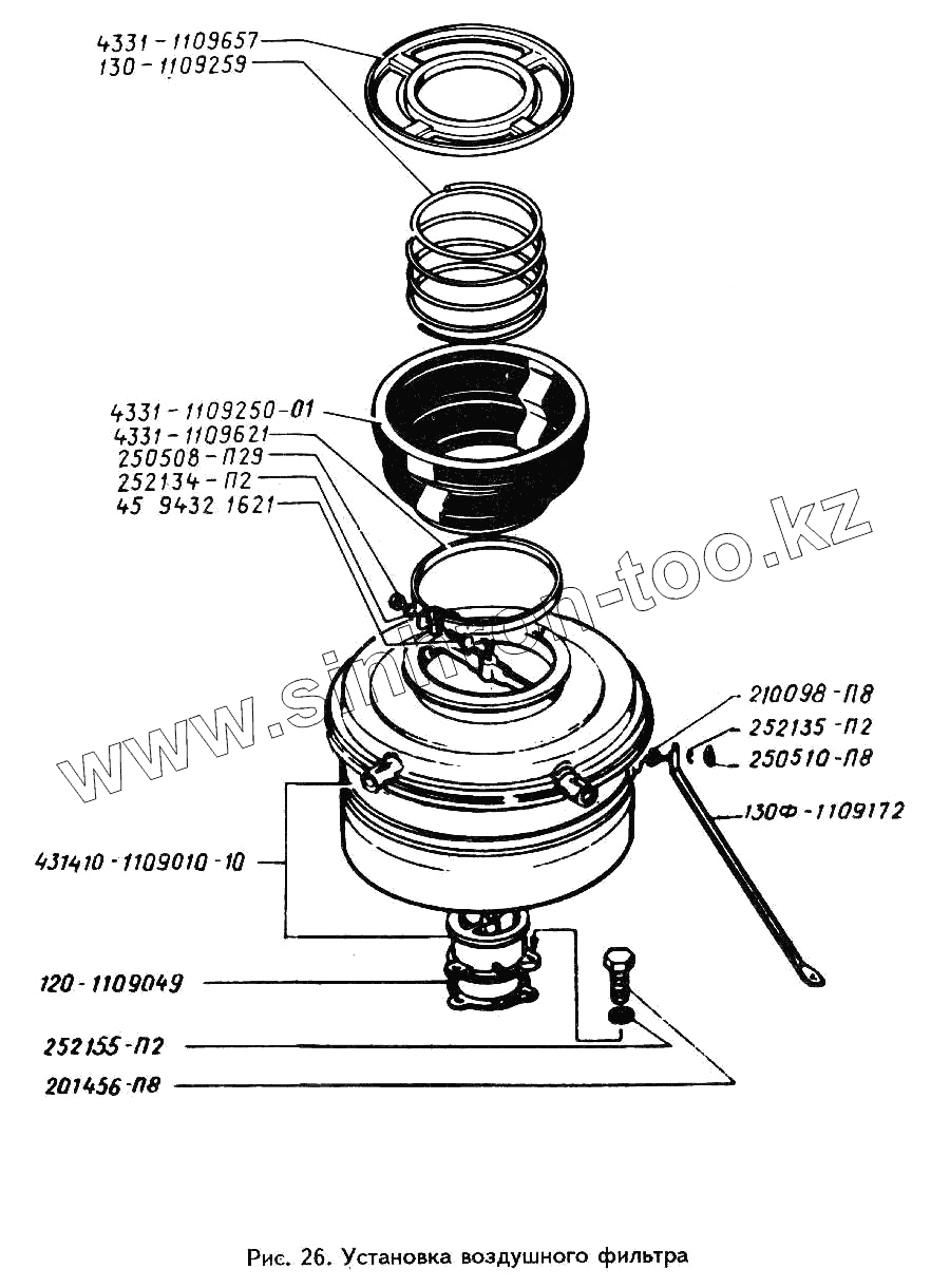 Каталог запасных частей к технике: ЗИЛ-494560. Установка воздушного фильтра