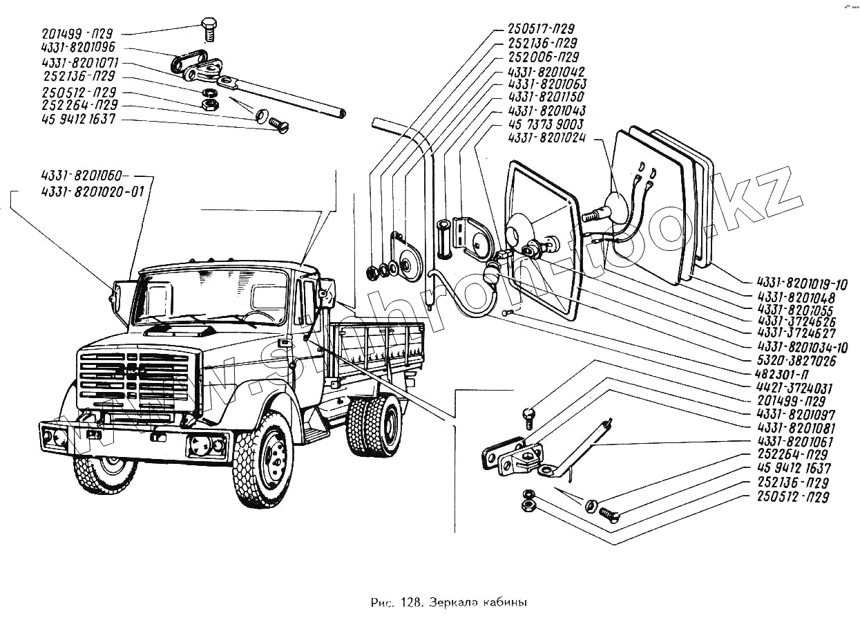 Каталог запасных частей к технике: ЗИЛ-494560. Зеркала кабины