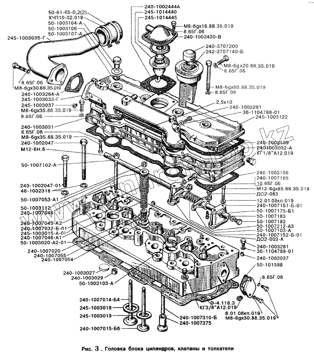 Каталог запасных частей к технике: ЗИЛ-5301. Головка блока цилиндров, клапаны и толкатели