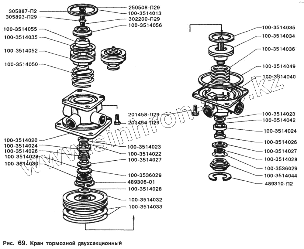 Каталог запасных частей к технике: ЗИЛ-5301. Кран тормозной двухсекционный