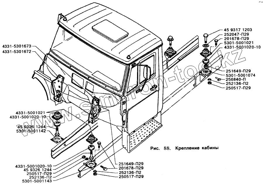 Каталог запасных частей к технике: ЗИЛ-5301. Крепление кабины