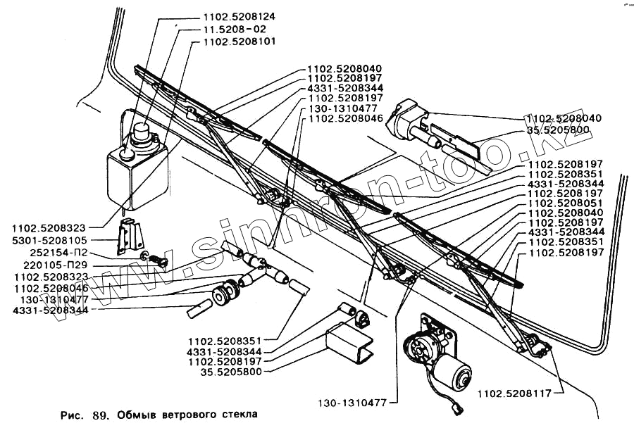 Каталог запасных частей к технике: ЗИЛ-5301. Омыв ветрового стекла