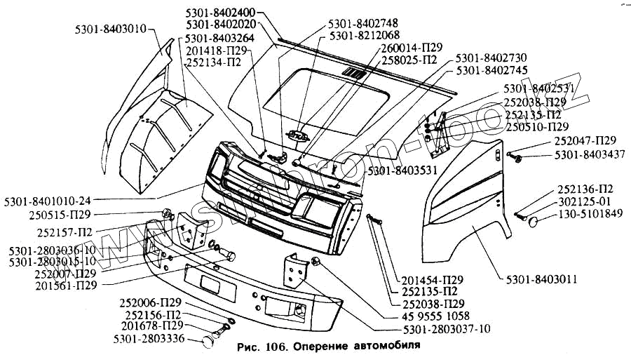 Каталог запасных частей к технике: ЗИЛ-5301. Оперение автомобиля