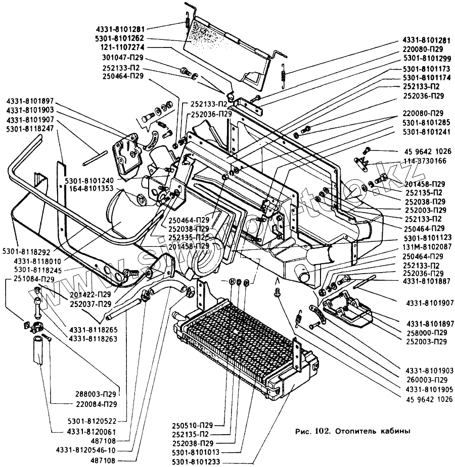 Каталог запасных частей к технике: ЗИЛ-5301. Отопитель кабины