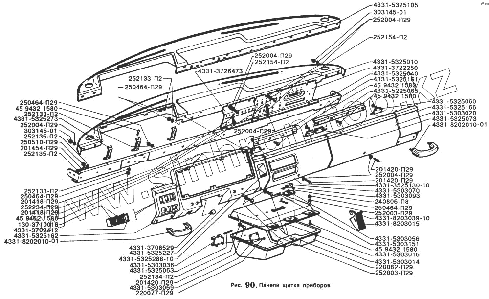 Каталог запасных частей к технике: ЗИЛ-5301. Панели щитка приборов