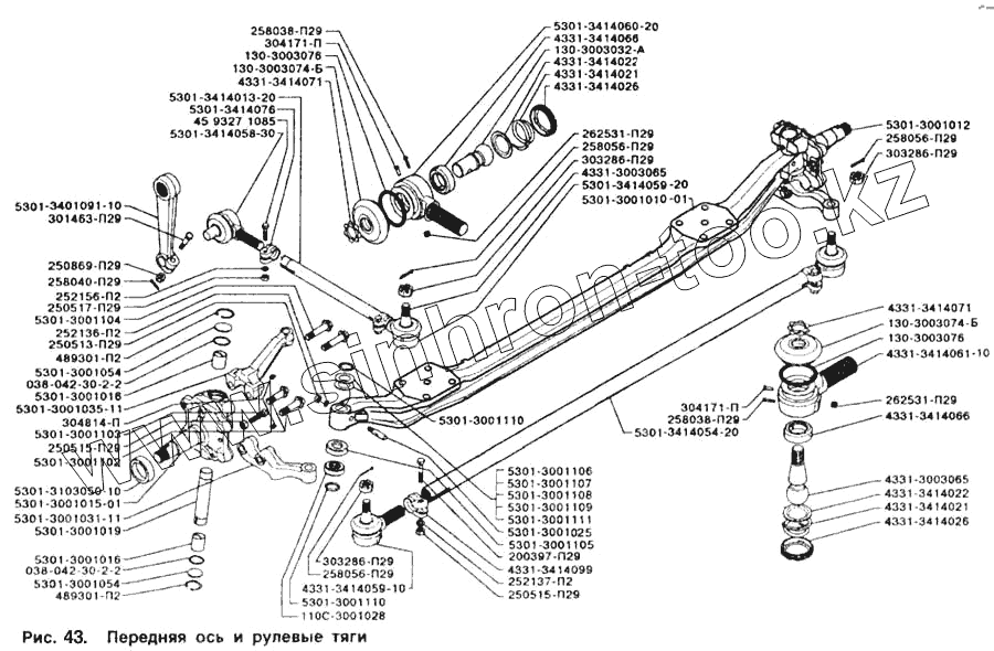 Каталог запасных частей к технике: ЗИЛ-5301. Передняя ось и рулевые тяги