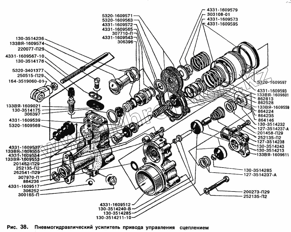 Каталог запасных частей к технике: ЗИЛ-5301. Пневмогидравлический усилитель привода управления сцеплением