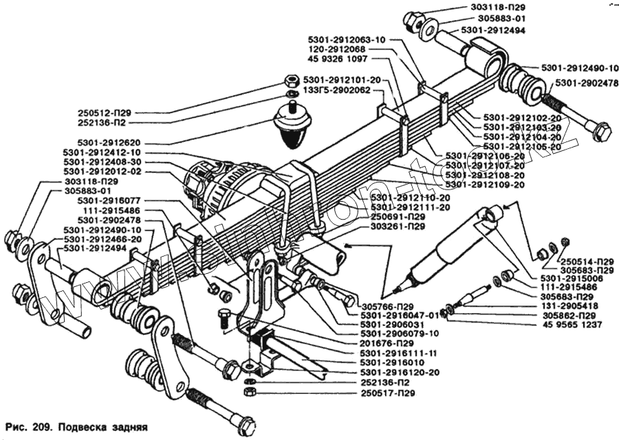 Каталог запасных частей к технике: ЗИЛ-5301. Подвеска задняя