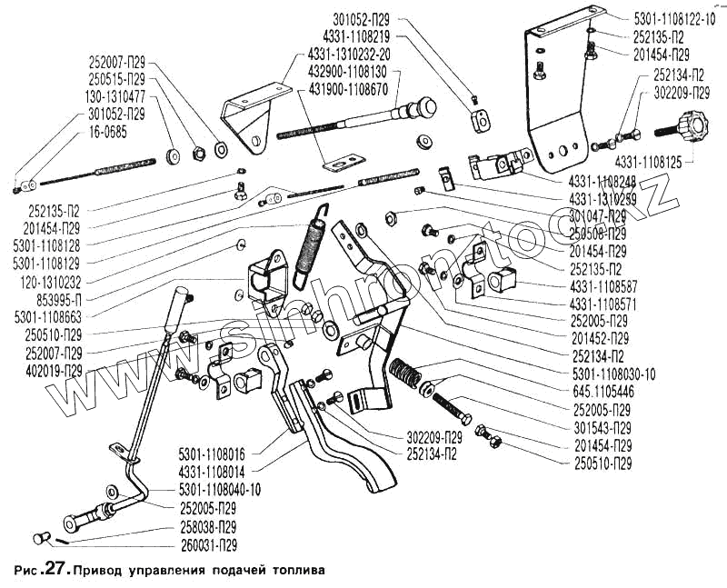 Каталог запасных частей к технике: ЗИЛ-5301. Привод управления подачей топлива