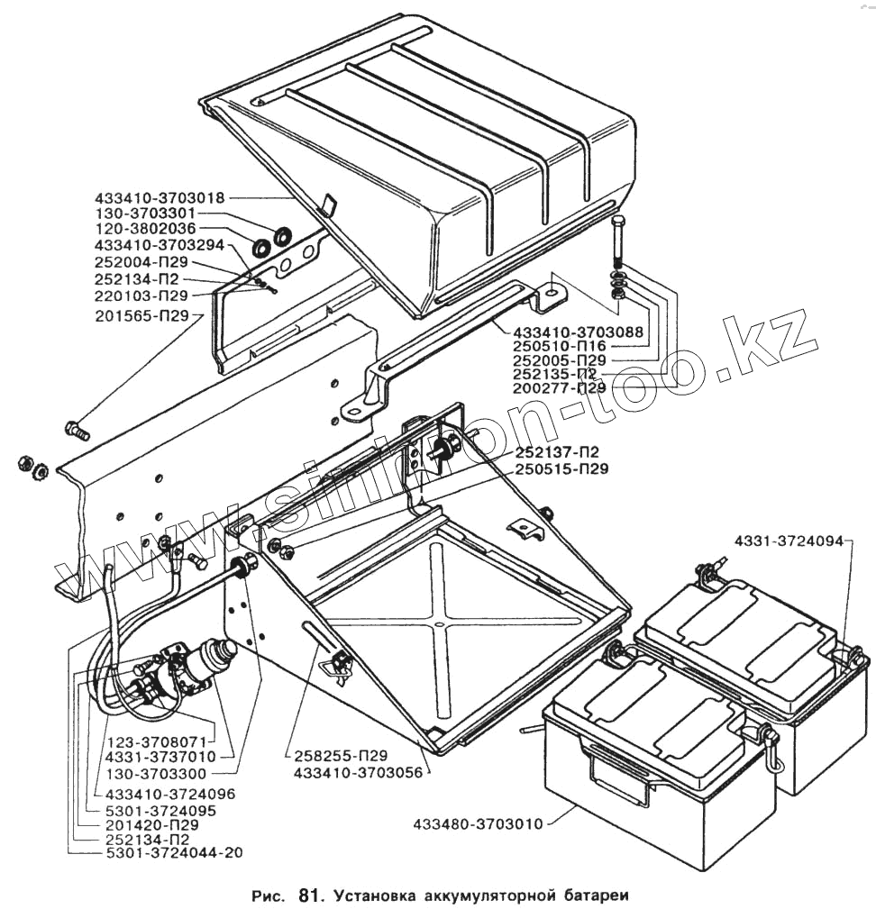 Каталог запасных частей к технике: ЗИЛ-5301. Установка аккумуляторной батареи