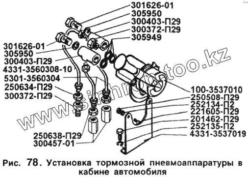 Каталог запасных частей к технике: ЗИЛ-5301. Установка тормозной пневмоаппаратуры в кабине автомобиля
