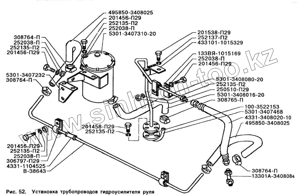 Каталог запасных частей к технике: ЗИЛ-5301. Установка трубопроводов гидроусилителя руля
