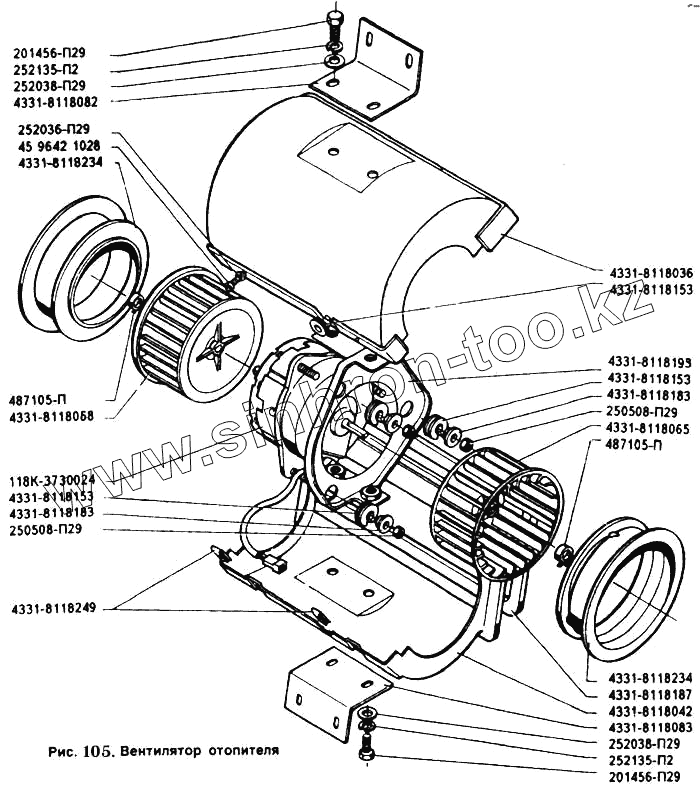 Каталог запасных частей к технике: ЗИЛ-5301. Вентилятор отопителя