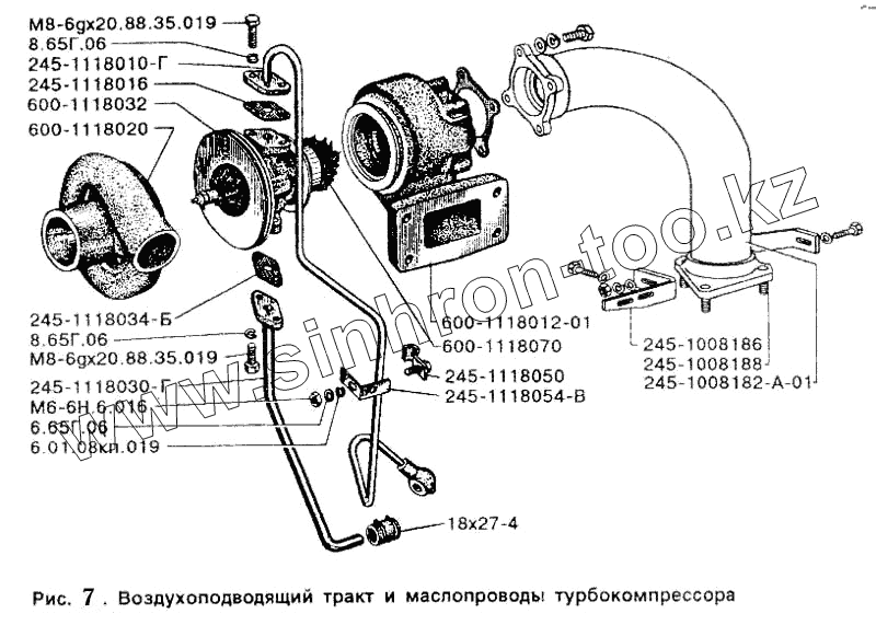 Каталог запасных частей к технике: ЗИЛ-5301. Воздухоподводящий тракт и маслопроводы турбокомпрессора