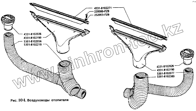 Каталог запасных частей к технике: ЗИЛ-5301. Воздуховоды отопителя