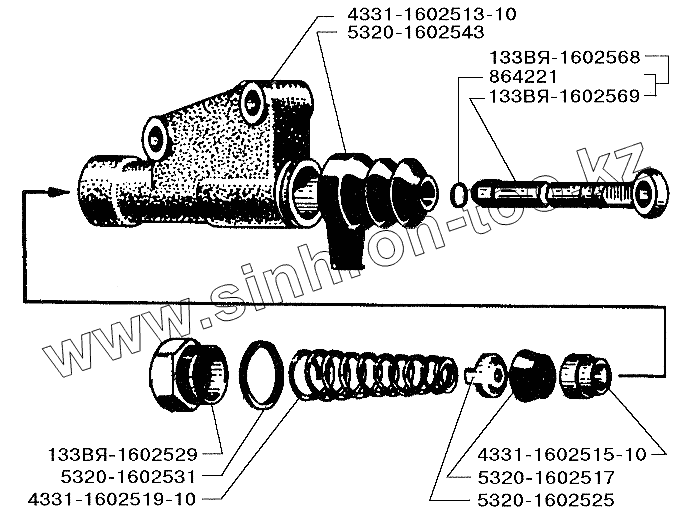 Каталог запасных частей к технике: ЗИЛ-5301 (2006). Главный цилиндр управления сцеплением