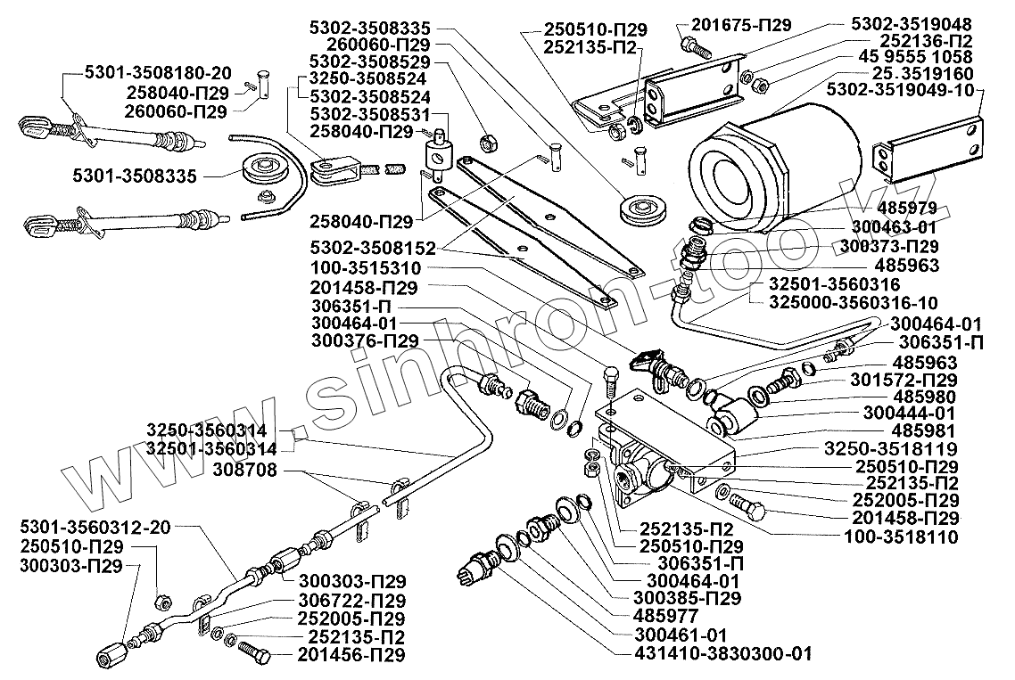 Каталог запасных частей к технике: ЗИЛ-5301 (2006). Установка привода стояночного тормоза