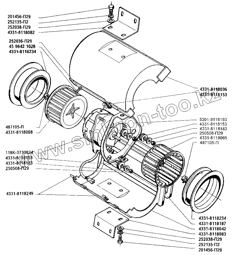 Каталог запасных частей к технике: ЗИЛ-5301 (2006). Вентилятор отопителя кабины