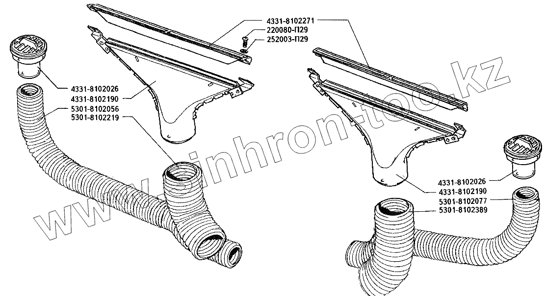Каталог запасных частей к технике: ЗИЛ-5301 (2006). Воздуховоды отопителя кабины