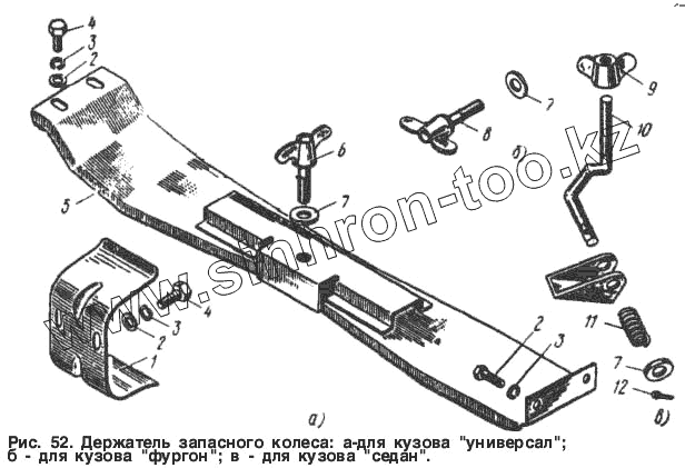 Каталог запасных частей к технике: АЗЛК Москвич-2137. Держатель запасного колеса