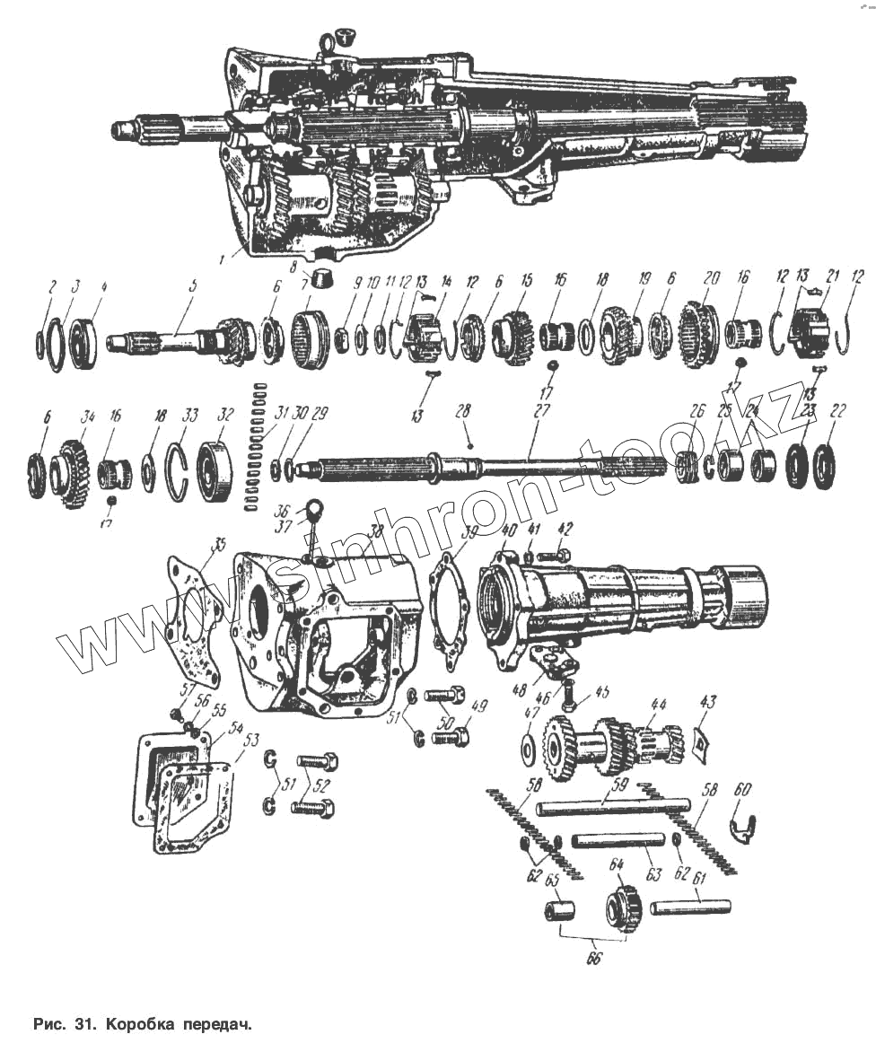 | 66 | 408-1701080 | Шестерня паразитная заднего хода в сборе |