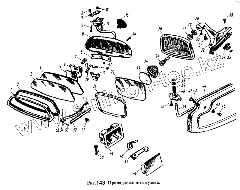 Каталог запасных частей к технике: АЗЛК Москвич-2137. Принадлежности кузова