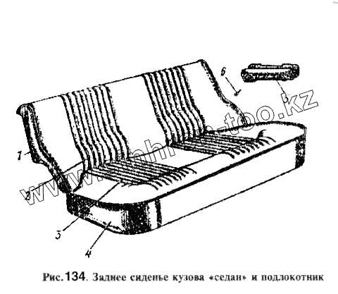Каталог запасных частей к технике: АЗЛК Москвич-2137. Заднее сиденье кузова "седан" и подлокотник