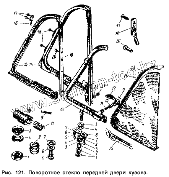 Каталог запасных частей к технике: АЗЛК Москвич-2140. Поворотное стекло передней двери кузова