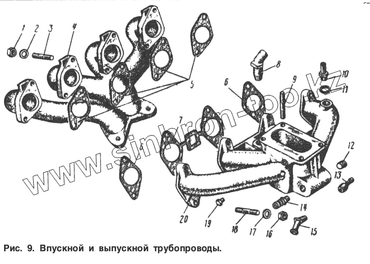 Каталог запасных частей к технике: АЗЛК Москвич-2140. Впускной и выпускной трубопроводы