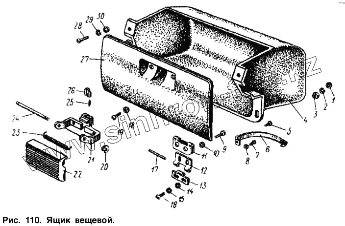 Каталог запасных частей к технике: АЗЛК Москвич-2140. Ящик вещевой
