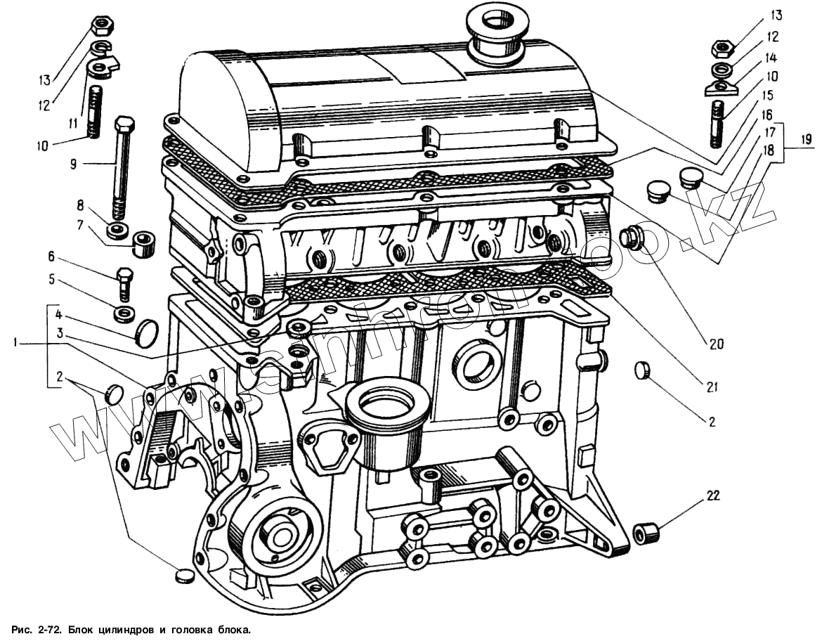 Каталог запасных частей к технике: АЗЛК Москвич-2141. Блок цилиндров и головка блока
