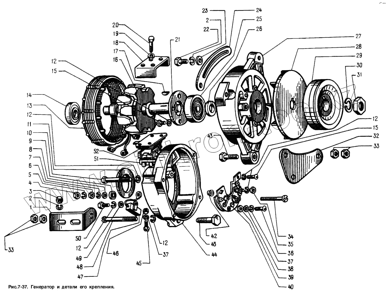 Каталог запасных частей к технике: АЗЛК Москвич-2141. Генератор и детали его крепления