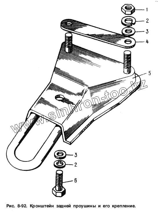 Каталог запасных частей к технике: АЗЛК Москвич-2141. Кронштейн задней проушины и его крепление