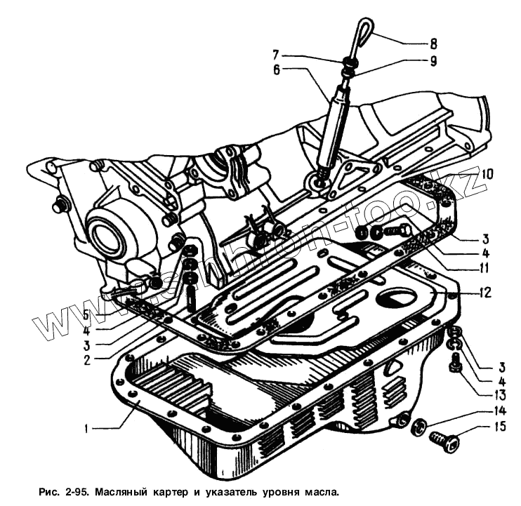 Каталог запасных частей к технике: АЗЛК Москвич-2141. Масляный картер и указатель уровня масла