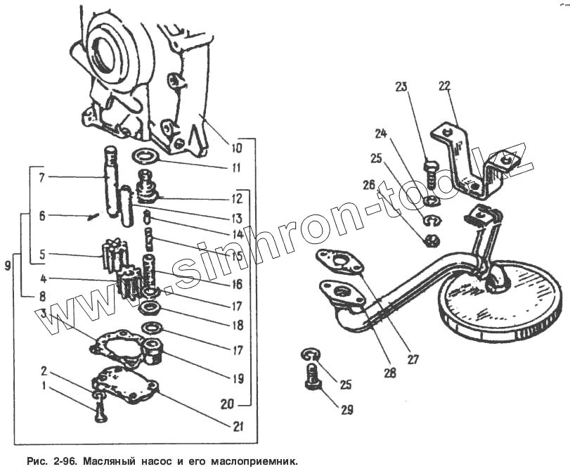 Каталог запасных частей к технике: АЗЛК Москвич-2141. Масляный насос и его маслоприемник