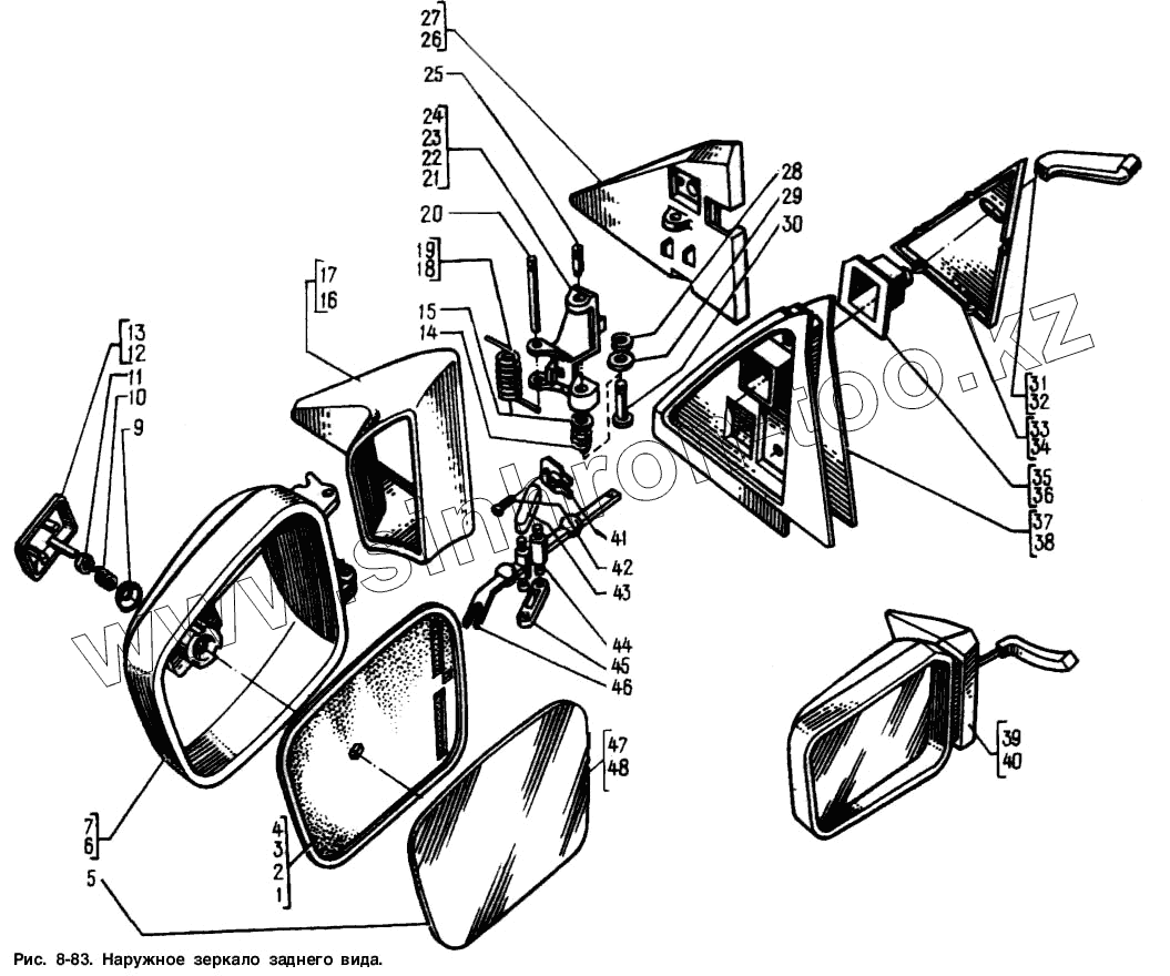 Каталог запасных частей к технике: АЗЛК Москвич-2141. Наружное зеркало заднего вида