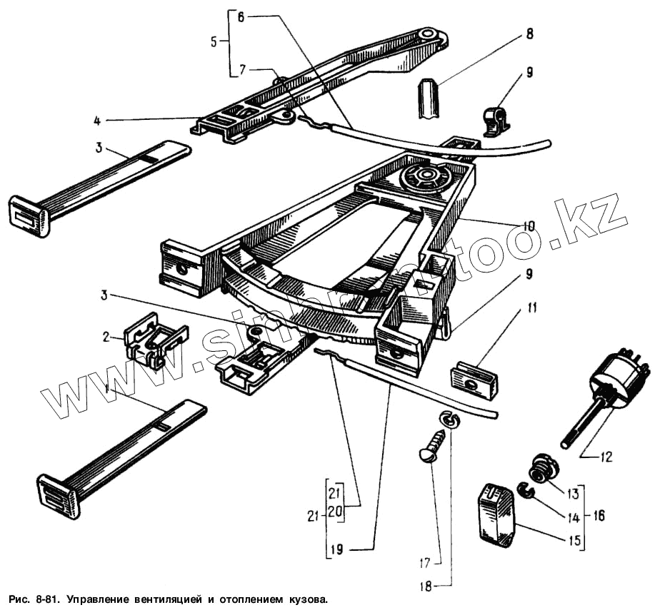 Каталог запасных частей к технике: АЗЛК Москвич-2141. Управление вентиляцией и отоплением кузова