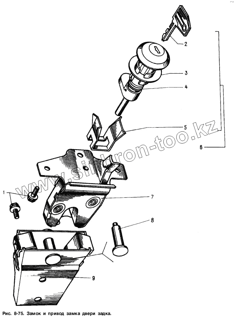 Каталог запасных частей к технике: АЗЛК Москвич-2141. Замок и привод замка двери задка
