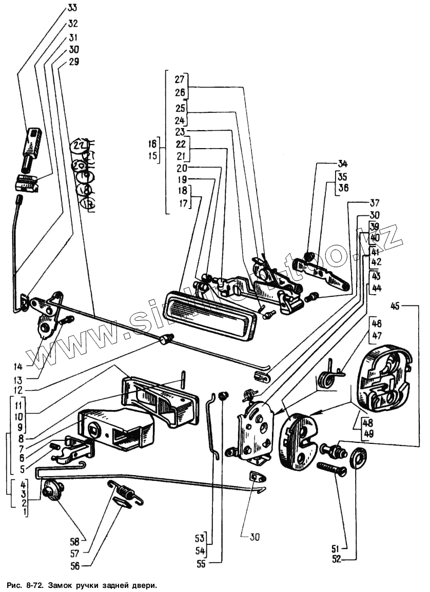 Каталог запасных частей к технике: АЗЛК Москвич-2141. Замок и ручка задней двери