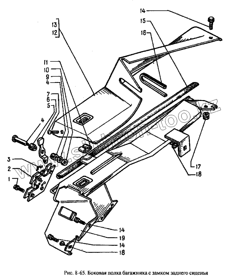 Каталог запасных частей к технике: АЗЛК Москвич-2335. Боковая полка багажника с замком заднего сидения